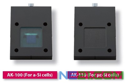AK-100型是用于评价以非晶硅为顶电池的叠层太阳能电池,AK-110是用于评价以微晶硅为底电池的叠层太阳能电池。这两款电池已经通过试产证明了比传统的模拟标准太阳电池具有更好的光谱匹配特性和更高的光学稳定性,力争成为全球的标准。同时,AK-100型也能用来评价有机薄膜太阳能电池和染料敏化太阳能电池,所以期待也能在这些领域里的普及AK-100。