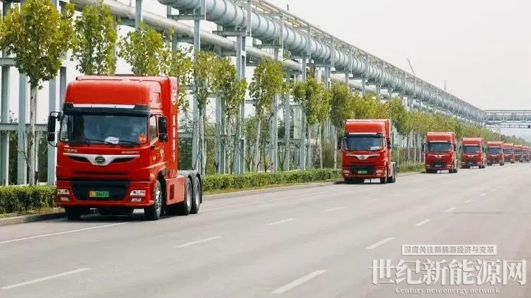 8月11日,在晋南钢铁集团有限公司氢能重卡交付仪式上,100辆搭载着国鸿氢能燃料电池的氢能重卡盛装亮相。