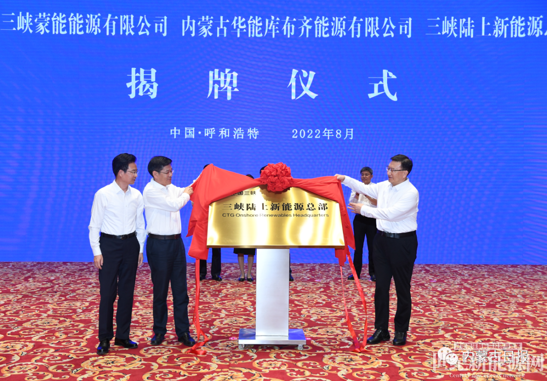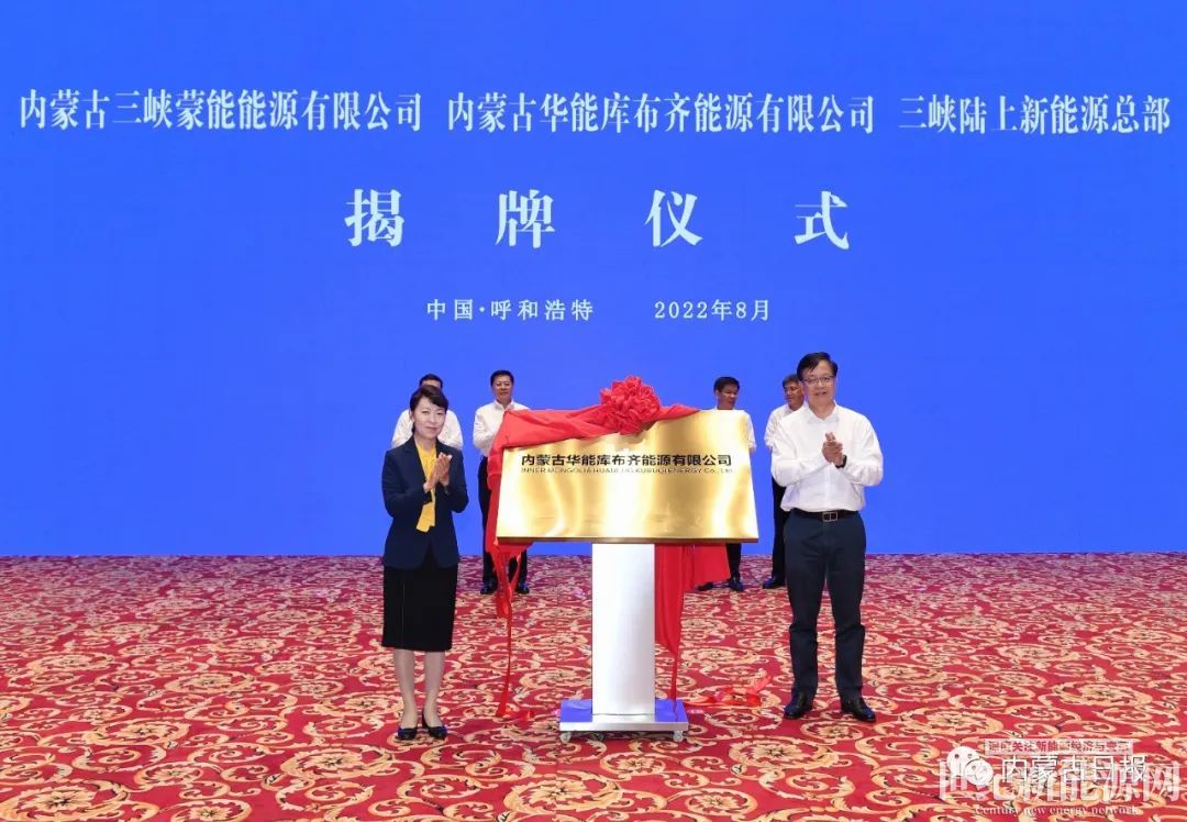 8月24日,王莉霞、黄志强、邓建玲、韩君分别为在我区新成立的内蒙古三峡蒙能能源有限公司、内蒙古华能库布齐能源有限公司、三峡陆上新能源总部揭牌。