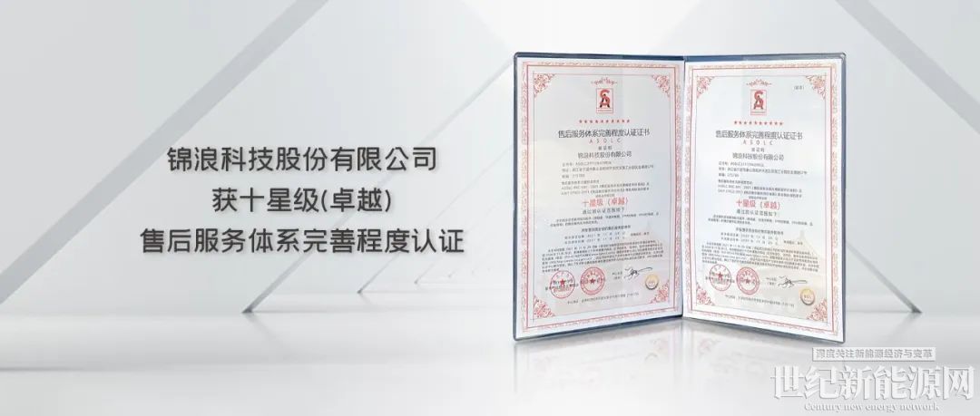 近日,锦浪科技获十星级(卓越)售后服务体系完善程度认证,售后服务版图加速扩张。