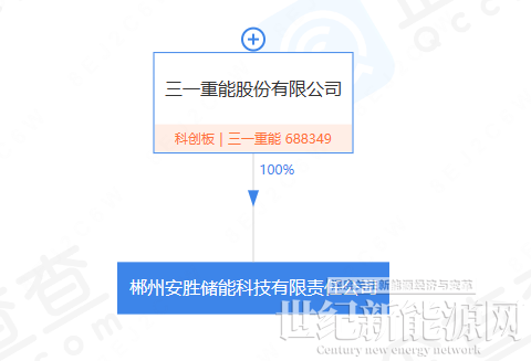 企查查APP显示,2月8日,郴州安胜储能科技有限责任公司成立,法定代表人为王志强,注册资本100万元人民币,经营范围包含储能技术服务、太阳能发电技术服务、风力发电技术服务等。据企查查股权穿透显示,该公司由三一重能100%控股。