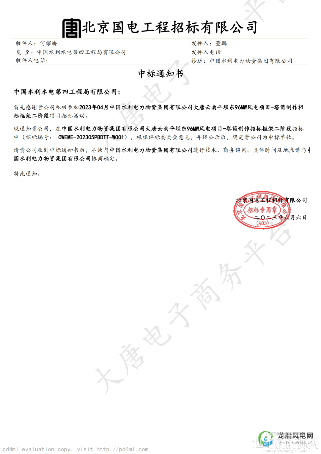 近日,中国水电四局市场开发传来喜讯,成功中标大唐云南平坝东96兆瓦风电场工程塔筒采购项目,本项目由中国水电四局(兰州)机械装备有限公司云南分公司执行。