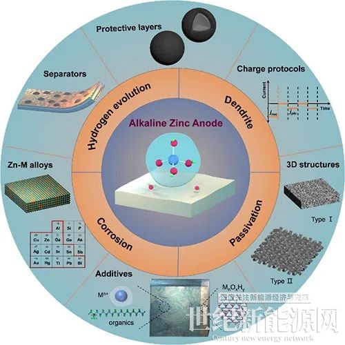该综述文章通过对碱性体系中锌负极面临的独特问题进行分析,确定了锌负极与电池可逆性、容量、可储存性、库伦效率相关的枝晶生长、钝化、腐蚀、析氢等关键问题。同时,团队进一步对目前的研究策略进行解耦,从电极3D结构、电极保护层、电极合金化、电解质添加剂、新型隔膜及充电策略等六个互补的方面进行了深入、全面的讨论。此外,团队将各种策略关于枝晶、钝化、腐蚀、析氢、死锌及反应动力学等不同问题的优化机理进行详细分析,提出了未来碱性锌负极研究的复合策略方向。团队进一步提出将电解质使用量引入电池性能评价体系,并展望了高性能碱性锌负极未来发展的机遇与挑战。