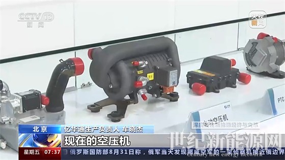 亿华通生产负责人 牟晓杰:空压机在五年前,好一点的离心式空压机都是百分之百进口的,一台空压机大概价格在十几万元人民币,经过这几年我们的国产化的推动,迭代之后,现在的空压机目前大家看到的空压机的价格在一万块钱左右。