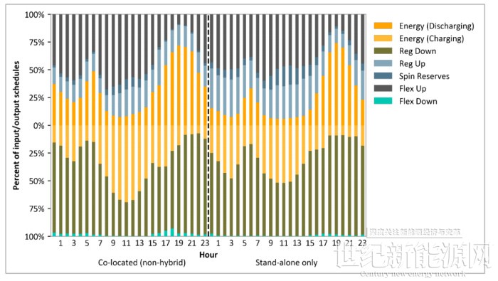 图1 共址储能电站与独立储能电站的平均每小时出力情况比较