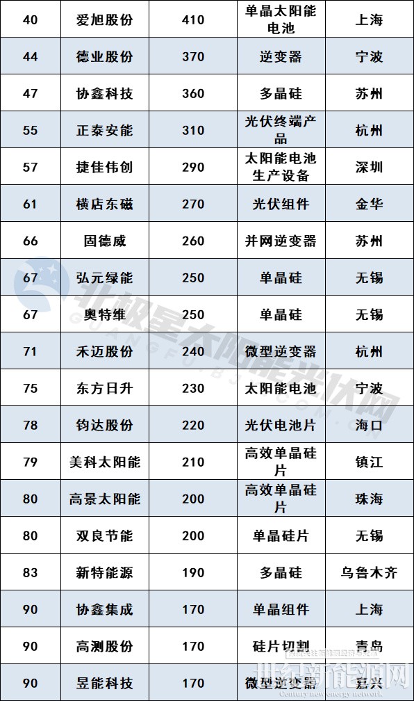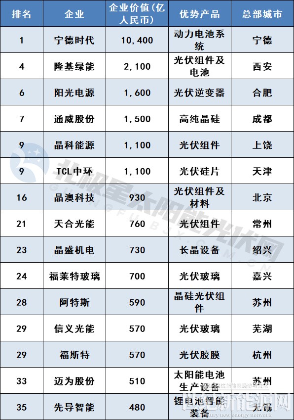 据榜单显示,宁德时代、比亚迪、理想汽车位居前三,共计34家光伏企业,榜单前十的企业中有5家光伏企业,分别是隆基绿能、阳光电源、通威股份、晶科能源、TCL中环。