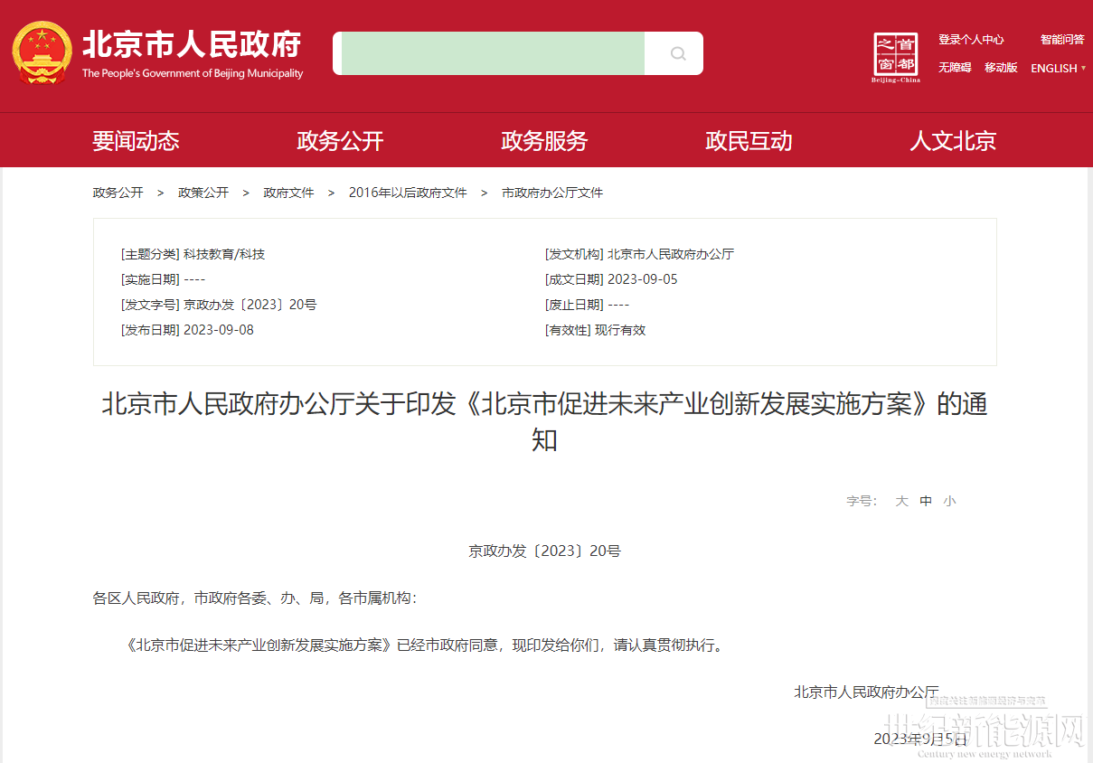 北京市人民政府办公厅关于印发《北京市促进未来产业创新发展实施方案》的通知