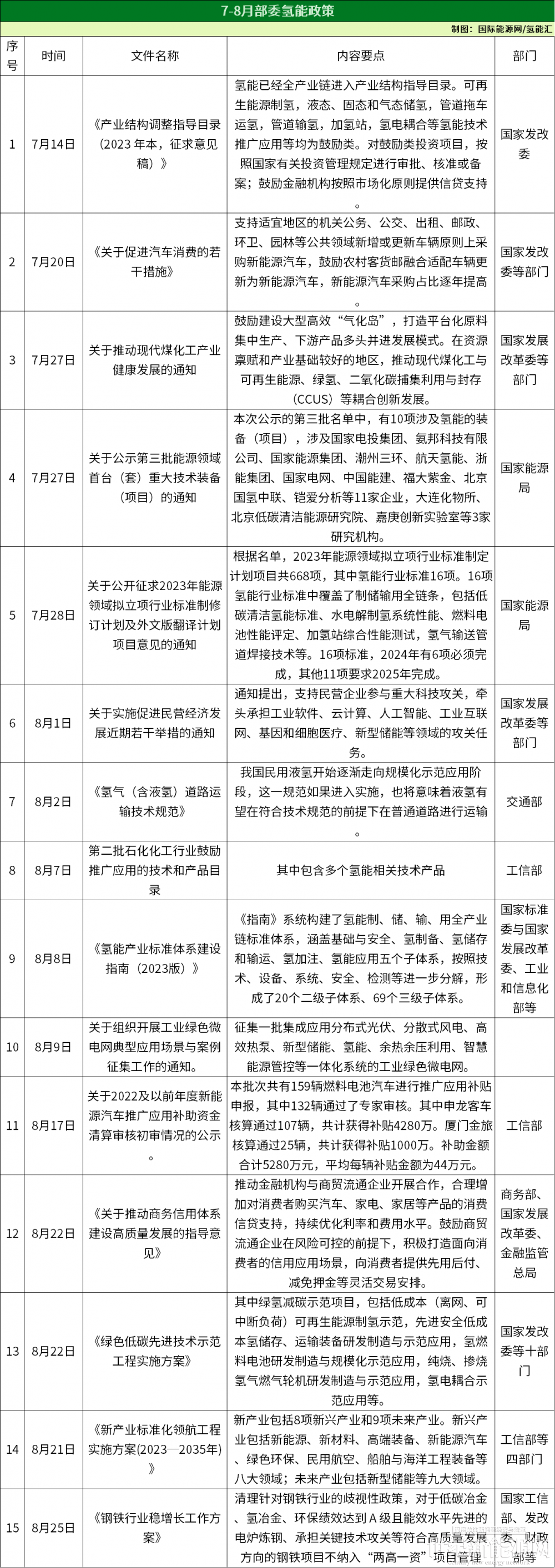 8月3日,河南濮阳发布的《关于开展2023年促进氢能产业发展专项资金申报工作的通知》指出,对出厂价格不高于同纯度工业副产氢平均出厂价格,且用于本市加氢站的绿氢,2022给予每千克15元补贴,2023给予每千克12元补贴,最高不超过500万元。