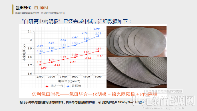 氢田时代自研的“高电密阴极”已完成中试,相比于传统高性能雷尼镍电极材料,自研高电密阴极的应用,同比能耗降低0.3KWh/Nm³.H2以上。