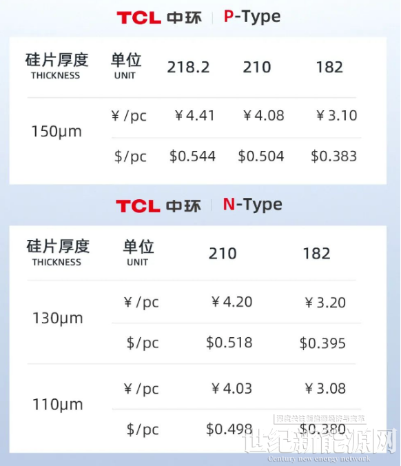 值得注意的是,此次隆基和TCL中环均将P型150μm 182硅片的价格保持在了3.1元/片。