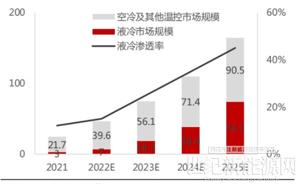 据分析,2025年国内储能温控出货价值量将达到165亿元随着储能能量和充放电倍率的提升,中高功率储能产品使用液冷的占比将逐步提升,液冷有望成为未来主流方案,其中液冷技术到 2025 年渗透率有望达到 45%左右。