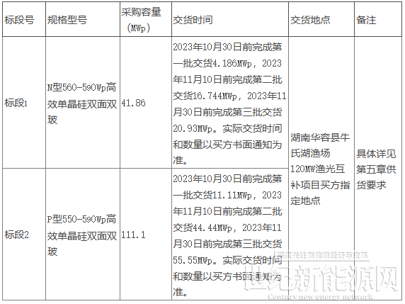 湖南华容县牛氏湖渔场120MW渔光互补项目位于湖南岳阳华容县北景港镇和禹山镇,规划交流侧装机容量为120MW,直流侧装机容量152.96MWp,拟采购项目所需的光伏组件设备。