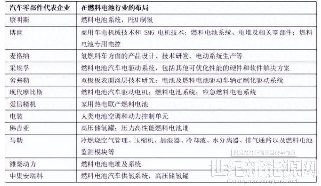 汽车零部件代表企业在燃料电池行业的布局方向