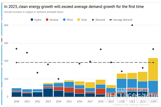 图说:2023年新能源装机量预计发电量将首次超过需求量的增长。