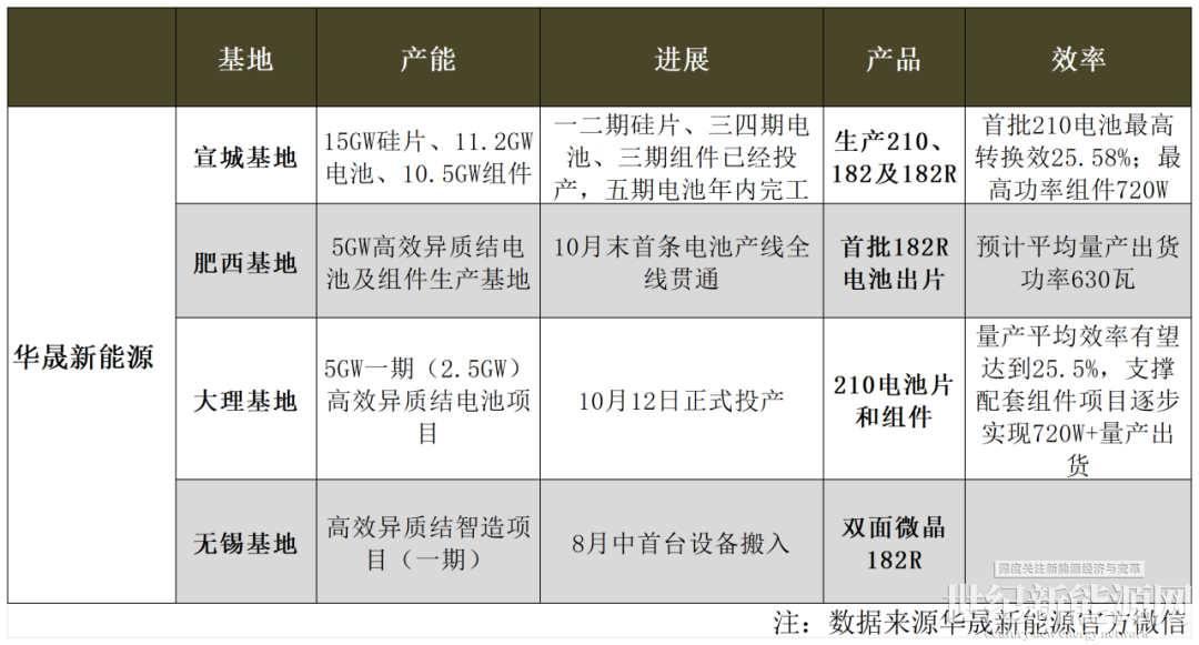 如山东泉为山东基地一期3GW高效异质结光伏组件产能上半年已量产出货,公司安徽基地正在建设中。