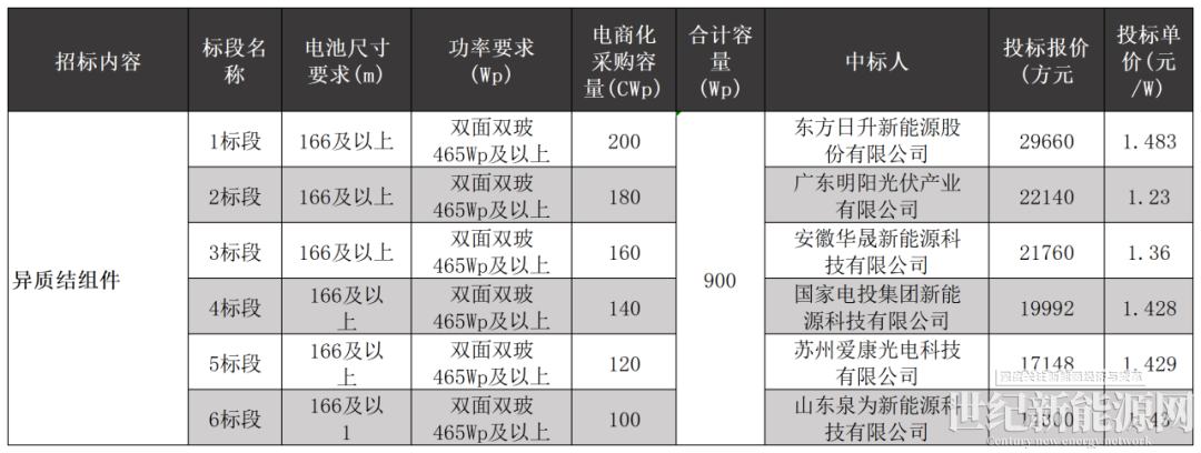 该订单招标项目为国家电力投资集团有限公司物资装备分公司和电能易购(北京)科技有限公司联合举办的2023年度电商化集中采购项目。据悉,国家电投9月的这次采购总规模为1520MW,其中异质结电池为900MW所占份额最大,并分6个标段进行招标。