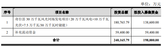公告表示,根据昌吉州发改委出具的《昌吉回族自治州企业投资项目登记备案证》,批复奇台县 12.5 万千瓦储能+50 万千瓦(风光同场)新能源项目建设于新疆自治区昌吉州奇台县。其中,由公司负责建设的奇台县 30万千瓦风光同场发电项目包括:200MW 风电项目、100MW 光伏项目以及75MW/300MWh 储能项目。