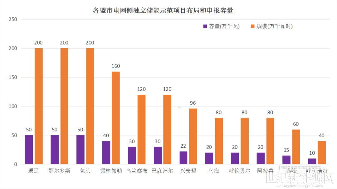 布局上看,通辽、鄂尔多斯与包头三市规模最大,均为500MW/2000MWh。其中赤峰单体项目申报要求为150MW/600MWh,兴安盟阿尔山市为20MW/160MWh,其余各地均为100MW/400MWh。