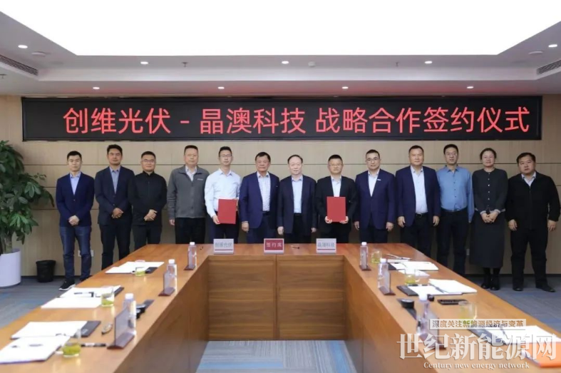 11月21日,创维光伏与晶澳在北京签署战略合作协议。根据协议,双方将充分发挥各自优势,秉承互利共赢的原则,共同开发及推进户用分布式、工商业分布式等光伏项目,推动在国内、国际市场的全方位合作,助力能源绿色、高效、可持续发展。