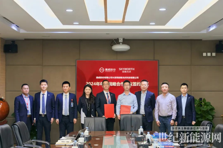 12月20日,创维光伏与通威股份签署2024年战略合作协议。根据协议,2024年双方将在分布式户用、工商业以及海外市场光伏组件领域展开超3GW的合作,助力双方企业实现高质量发展,为用户带来更多价值。