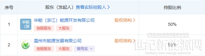 据查询,瑞安华欧海上风电公司为华能浙江能源开发公司和温州能源发展公司控股公司。双方各占50%股比。