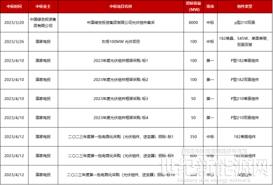 除此之外,协鑫集成还在国家电投2023年度光伏组件框架采购4个标段、新华水电2023年度光伏组件集中采购、华电集团2023年光伏组件集中打捆采购等多个标段中,位列第一候选人。