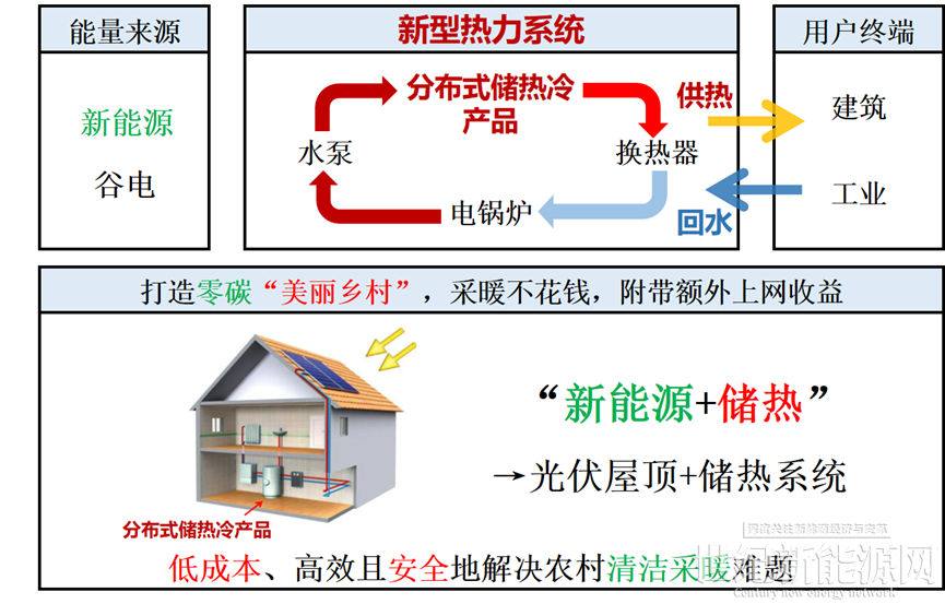 针对农村、城市家庭、工商农企业等分布式用户终端,通过利用新能源(太阳能、风电、地热能等)、廉价谷电、高温余热、中低品位废热等资源,搭配定制化储热冷技术解决方案,结合中央研究院先进水储热、熔盐/导热油储热、堆积床储热等分布式储热冷单元及其多元集成化系统,为用户提供清洁、高效、稳定的冷热能源并带来可观的经济效益,打造县域清洁供热冷示范标杆,为建设美丽乡村、零碳家庭、绿能企业赋予新动力。