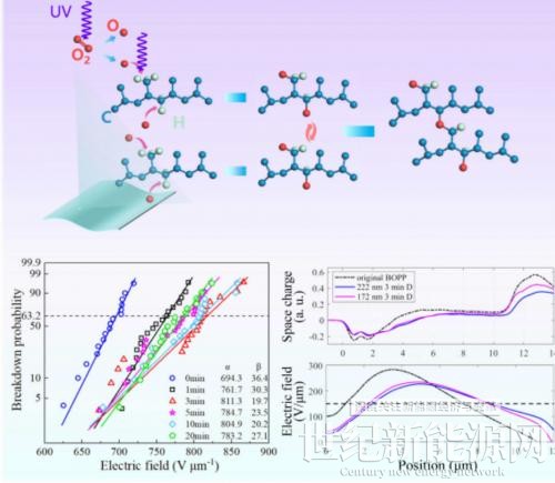 薄膜电容器是特高压直流输电、柔性直流输电、电磁能装备的核心储能器件。双向拉伸聚丙烯(BOPP)作为薄膜电容器的关键材料,具有击穿电场高、常温损耗低等优势。而高温下BOPP击穿电场严重下降、损耗急剧提升,成为限制薄膜电容器性能的瓶颈。现有研究多通过无机掺杂、表面喷涂、沉积、接枝等方法,提升BOPP介电性能,但常用化学试剂多步处理,并可能引入新的界面问题,尚需攻克从实验室到工业应用的难题。