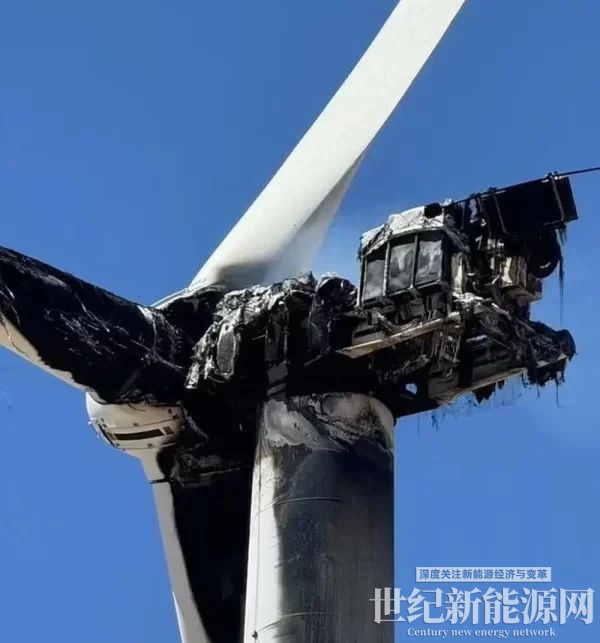 风电场运营人员介绍,目前事故风机已经被完全隔离,机组塔筒顶部被全部烧毁,所有的叶片仍处于连接状态,没有出现掉落现象,风机在拆除过程中需要防范突然掉落的风险,事故未造成人员伤亡,事故原因正在进一步调查中。