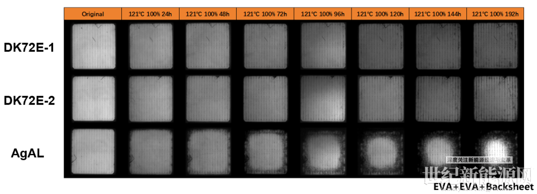 基于对电池/组件可靠性长期的理论研究和实践积累,帝科DKEM®在激光增强烧结技术专用导电浆料开发之初,即深度考量配方设计的高可靠性。全新推出的DK72E正面专用浆料、DK95E背面增强浆料和DK82E增强主栅浆料全套金属化解决方案,率先实现了基于激光增强烧结技术平台的80nm薄n-Poly大规模量产。同时,经过大量电池、小组件、大组件层面的PCT、DH等测试,基于激光增强烧结技术的帝科DKEM®全套导电浆料组合可靠性较银铝浆常规烧结工艺实现了大幅提升,已通过多家头部电池/组件厂商的单玻、双玻组件可靠性认证,为TOPCon产品的全场景应用保驾护航。