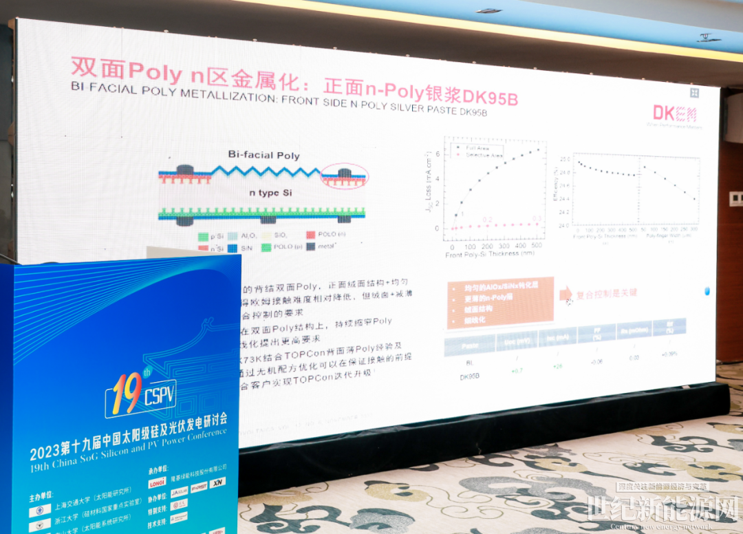 2023年11月2-4日,第19届中国太阳级硅及光伏发电研讨会(CSPV)在西安隆重召开。作为国内太阳能硅材料和光伏发电技术领域最具影响力的学术盛会,本届CSPV紧扣光伏前沿技术和创新应用。帝科DKEM®作为全球领先的光伏金属化浆料供应商受邀参加本次论坛,并作《从n-PolySi到p-PolySi: 金属化浆料助力TOPCon+/XBC迭代升级》和《高效高可靠性金属化方案加速HJT产业化》的主题演讲,分享帝科DKEM®全品类金属化浆料方案如何加速N型高效电池技术迭代。