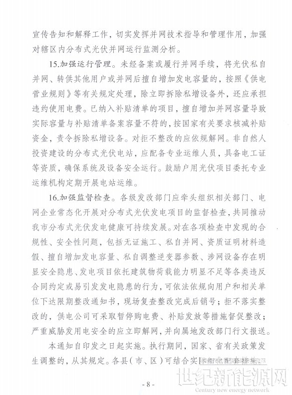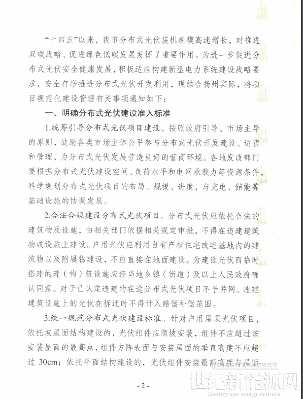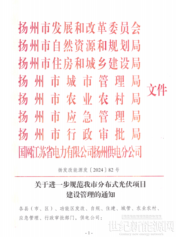 日前,扬州市发改、自规、住建、城管、农业农村、应急管理、行政审批、供电公司等部门联合下发《关于进一步规范我市分布式光伏项目建设管理的通知》,重点围绕分布式光伏建设准入标准、优化前期管理手续、提升并网接入服务、规范并网管理和加强合规运行监督五个方面,明确了具体举措。