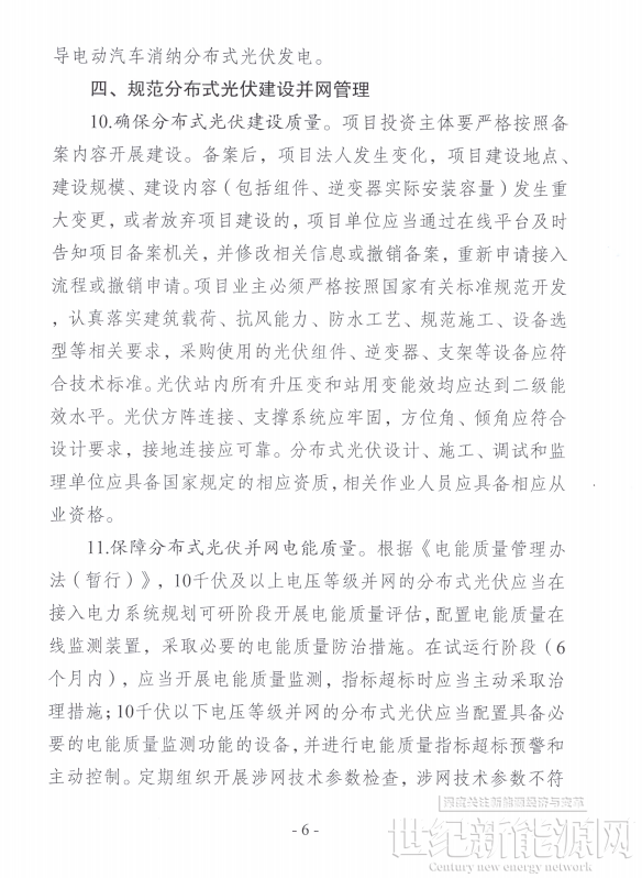 按照“政府引导、市场主导”原则,鼓励各类市场主体公平参与分布式光伏开发建设、运营和管理,根据分布式光伏建设空间、负荷水平和电网承载力等资源条件,科学规划分布式光伏项目的布局、规模、进度以及与充电、储能等基础设施的协调发展。