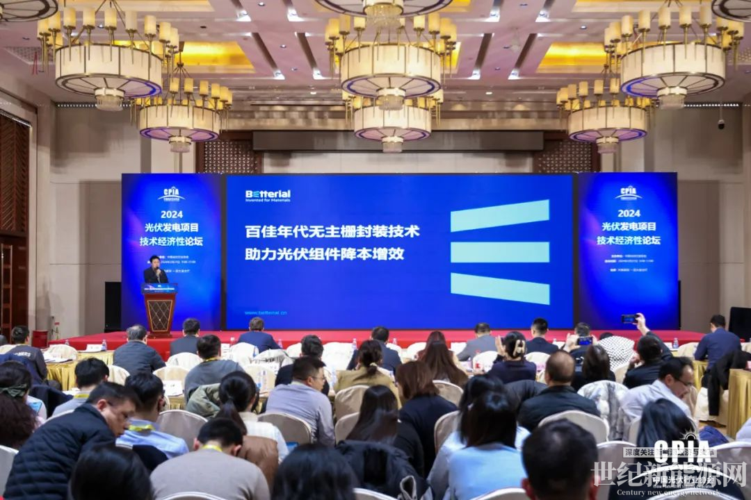 不久前,中国光伏行业协会在北京组织召开了“2024 光伏发电项目技术经济性论坛”,百佳年代受邀出席,并展示了最新的应用于光伏0BB无主栅技术的高可靠性封装解决方案。