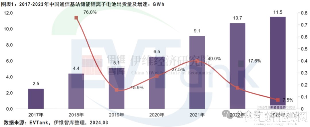 近日,研究机构EVTank联合伊维经济研究院共同发布了《中国通信基站储能行业发展白皮书(2024年)》。白皮书数据显示,截止到2023年年底中国累计建成并开通5G基站337.7万个,其中2023年当年新建数量超过100万个。EVTank数据显示,5G基站建设叠加4G基站改造带动中国基站用储能电池出货量在2023年达到18.6GWh,其中锂离子电池出货量达到11.5GWh,同比增长7.5%,但是由于电池价格的大幅度下跌,中国通信基站储能电池市场规模同比下降25.5%。