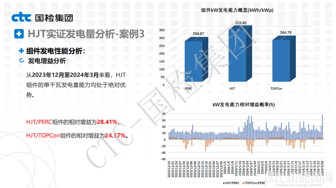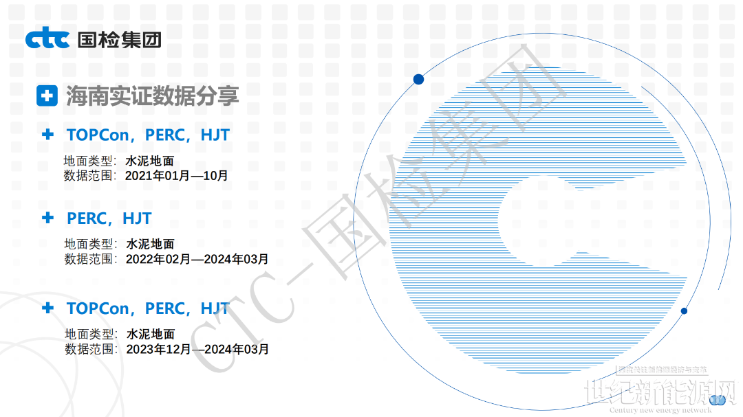 日前,华晟新能源主办的异质结技术进展及应用研讨会在中国武汉成功召开。中国国检测试控股集团股份有限公司光伏检验认证院户外实证技术总监张洋在研讨会上做《异质结组件在高温高湿环境下的实证分享》。据报告数据显示,在海南高温高湿环境的3个案例中,“HJT组件的单千瓦发电量能力均处于绝对优势”;异质结在处于高于25℃的环境时,相对于TOPCon,PERC组件的发电优势更加明显。报告全文如下: