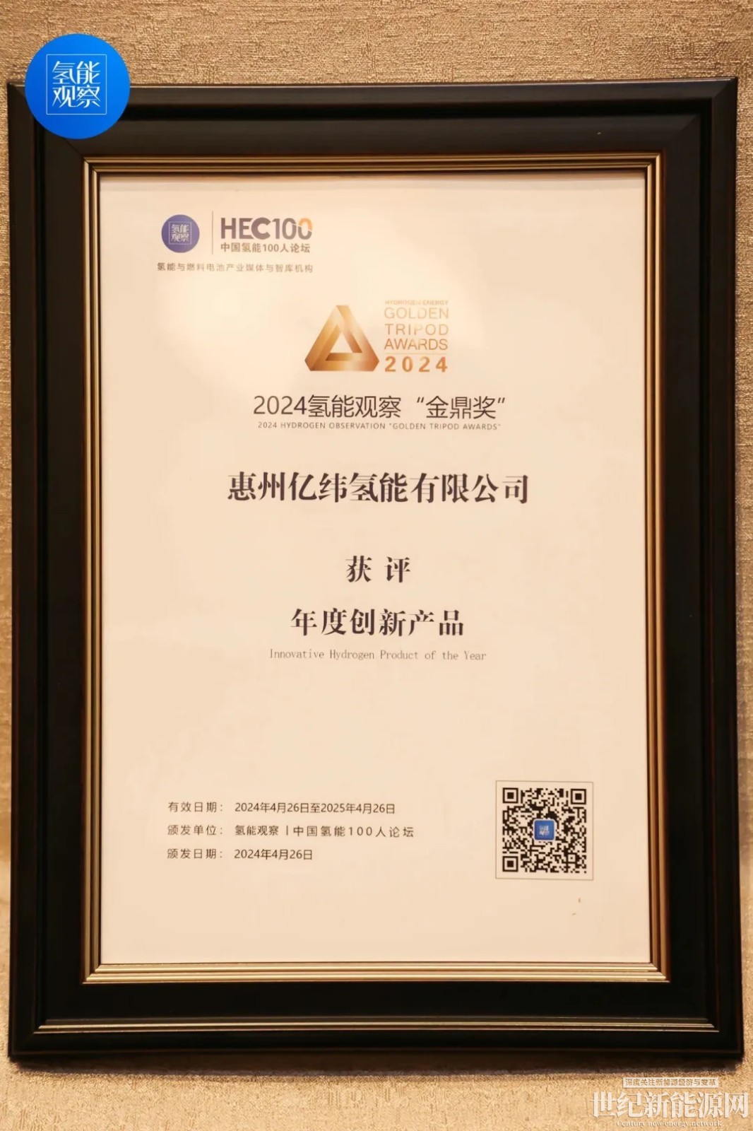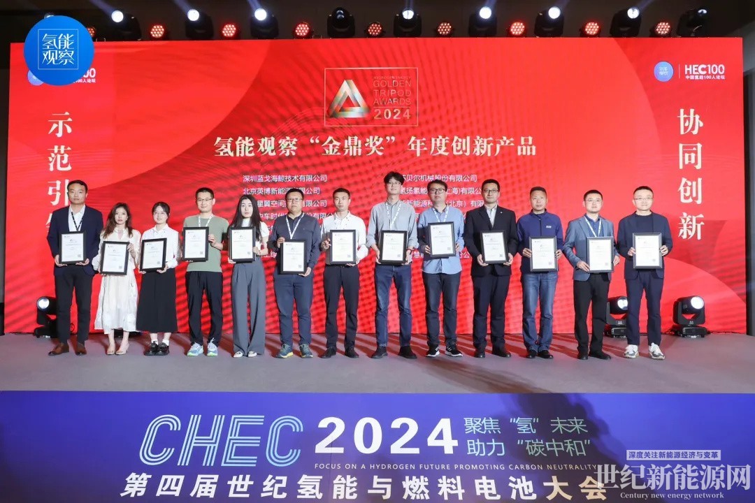 4月26日,CHEC 2024第四届世纪氢能与燃料电池大会暨氢能观察“金鼎奖”颁奖典礼在北京隆重举行,亿纬氢能凭借过硬的技术实力荣获氢能观察“金鼎奖”年度创新产品。