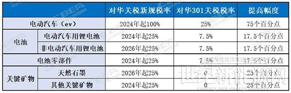 美国政府此次提高进口关税,涉及锂电池及电动汽车产业链相关产品关税的具体实施细则如下: