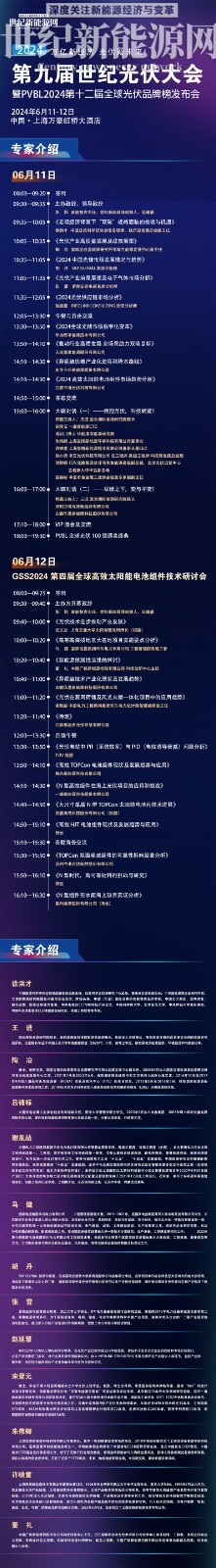 6月11日-12日,CPC2024第九届世纪光伏大会暨PVBL2024 全球光伏品牌榜发布会将于上海重磅“启航”,大会以“万亿新经济 光伏新未来”为主题。同期还将举办GSS2024第四届全球高效太阳能电池组件技术研讨会。将从产业经济、 政策变化、技术创新、光储融合等前瞻性话题和热点领域进行深入探讨和交流,促进上下游产业链协同创新进步,推动光伏产业的品牌建设与技术创新。