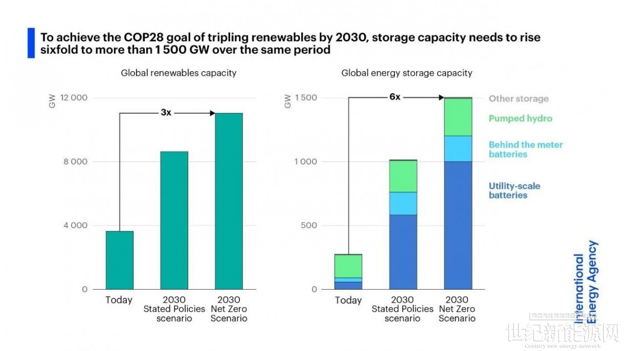 2023年12月,近200个国家的政府在联合国气候变化缔约方大会第二十八届会议(COP28)上就新的全球2030年目标达成了一致。他们的目标是到2030年将可再生能源产能增至三倍,能源效率提高一倍,加快从化石燃料转型,大幅减少甲烷排放。国际能源署发表题为Batteries and Secure Energy Transitions(电池与安全能源转型)的报告,指出电池储能将在实现全球能源转型愿景方面发挥关键作用。