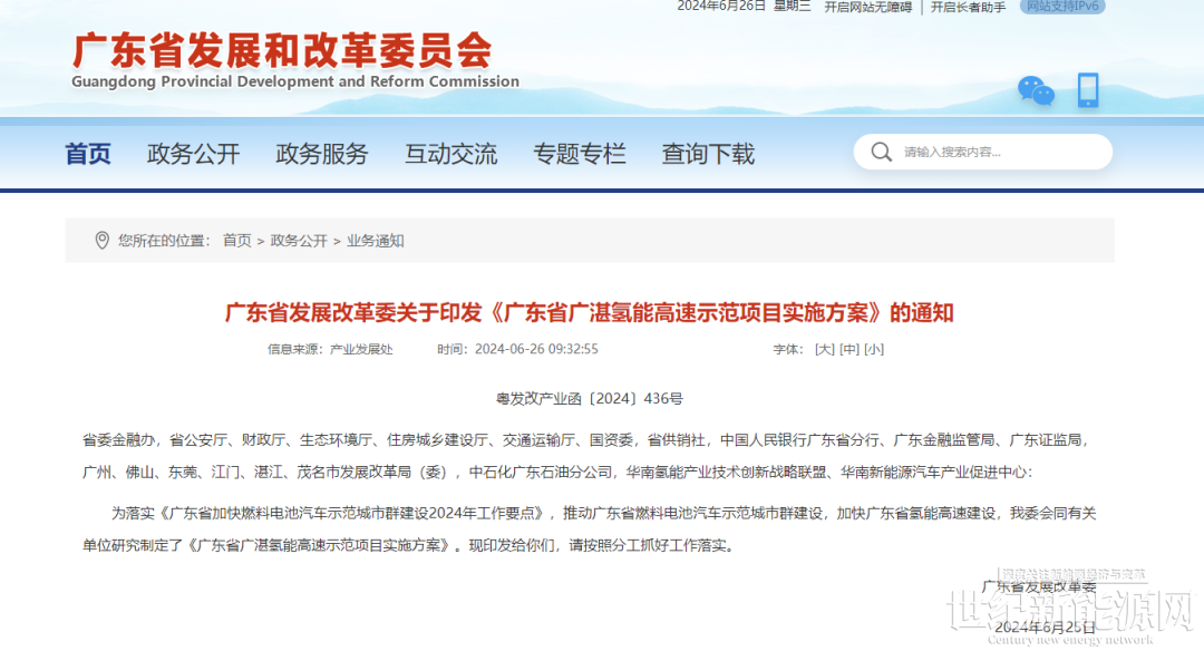 今日(6月26日),广东省发展改革委印发《广东省广湛氢能高速示范项目实施方案》(以下简称《实施方案》)。