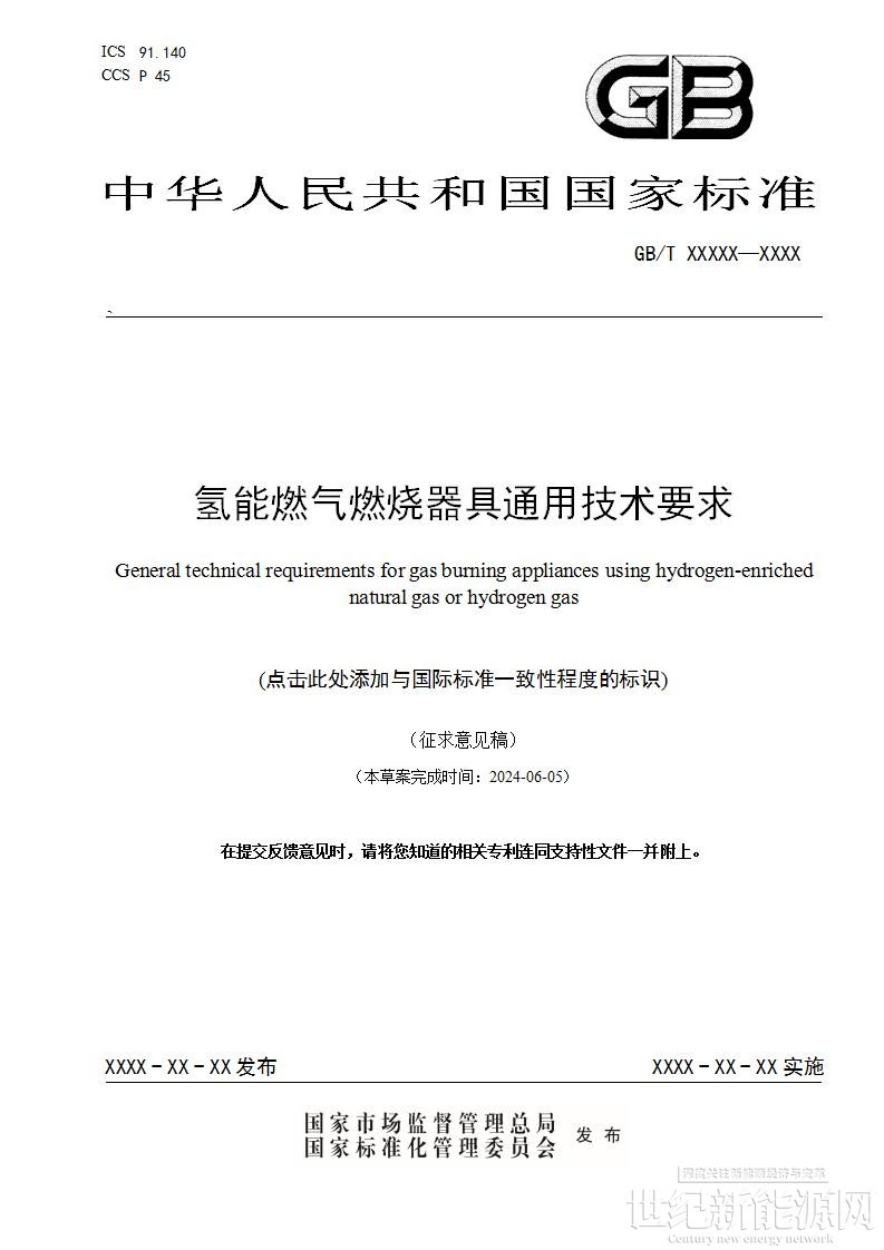 2024年6月28日,住房城乡建设部办公厅关于国家标准《氢能燃气燃烧器具通用技术要求(征求意见稿)》公开征求意见的通知。