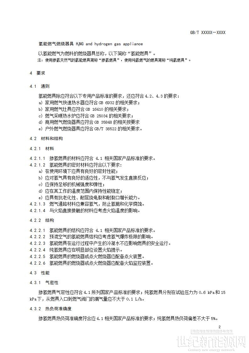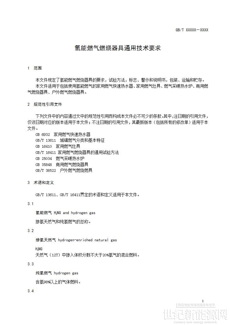 其中明确提出:该文件规定了氢能燃气燃烧器具的要求,试验方法,标志、警示和说明书,包装、运输和贮存;适用于包括使用氢能燃气的家用燃气快速热水器、家用燃气灶具、燃气采暖热水炉、商用燃气燃烧器具、户外燃气燃烧器具。