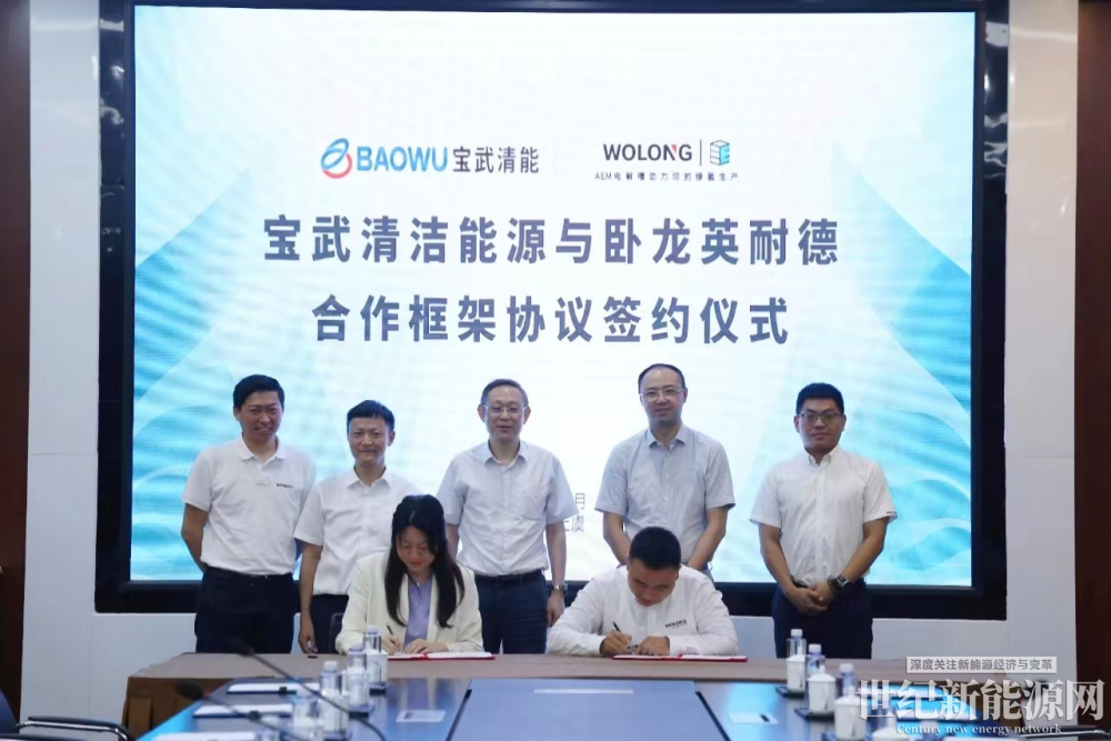 7月4日,宝武清洁能源有限公司(以下简称宝武清能)与卧龙英耐德(浙江)氢能科技有限公司(以下简称卧龙英耐德)签署合作框架协议,进一步深化双方在风光制氢、氢冶金、清洁能源(含绿氨)生产服务、节能降碳等领域的战略合作;聚焦如何提供更科学、更全面的绿氢、绿氨生产方案及清洁能源冶金协同方案,引领产业绿色发展。