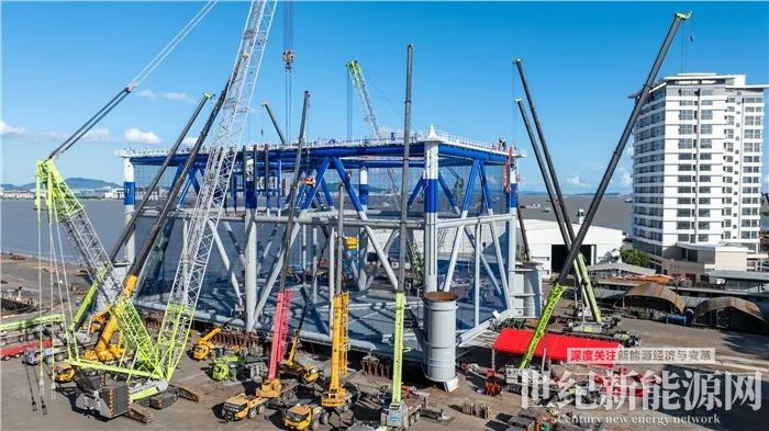 7月10日,中广核汕尾“伏羲一号”风渔融合示范项目网箱装备在广东省江门新会建造完工,将于近日运抵中广核汕尾后湖海上风电场海域开启海上安装及联合调试作业,标志着中国南海开阔海域首例抗台风型现代化海洋牧场科技平台即将正式投运。