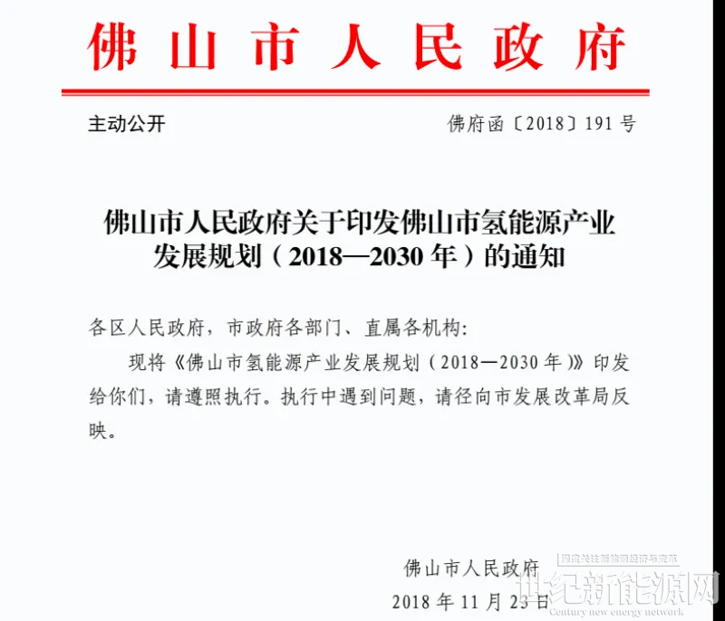 ▲佛山市氢能源产业发展规划