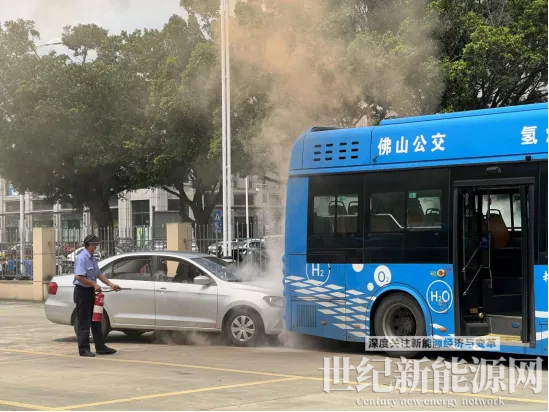 ▲氢能公交安全应急演练