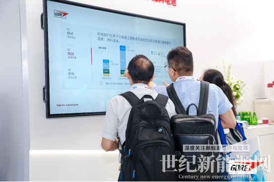 GORE-SELECT®质子交换膜是戈尔基于ePTFE增强型复合膜技术专长而开发的专利型质子交换膜,兼顾高功率密度、高机械与化学耐久性、以及低气体渗透率,广泛应用于市面上各种商用车、乘用车、叉车以及备用电源。在展会现场,戈尔着重展示了其核心产品矩阵中的M765.08(8μm)与M775.15(15μm)两款质子交换膜。其中M765.08是市面上最薄的燃料电池质子交换膜,在干燥条件下同时具备高功率密度与经济高效,适用于乘用车。汪志勇博士介绍道:“戈尔并不是为了做薄而做薄,而是为了满足客户的需求,在提升性能的同时维持高耐久是戈尔一直以来的优势”。而M775.15则在化学耐久性上有极大的提升,同时通过独特的产品设计帮助客户实现高功率密度的需求。未来,在降低重卡总拥有成本上,戈尔相信M775.15具有非常突出的优势。