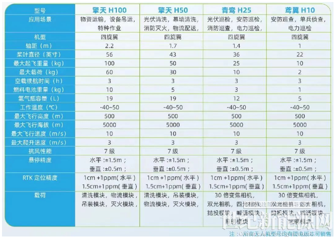 目前,协氢无人机已具备完整的从设计、研发到生产组装测试一站式技术实力,拥有从飞控、图传到动力系统等整套技术研发能力,并在氢能无人机领域完成从小型多旋翼到大载重无人机,从旋翼到垂直起降固定翼的完整产品线布局。多款产品目前已被广泛应用于光伏清洗、玻璃幕墙清洗、消防、巡检、物流吊装等多个领域。