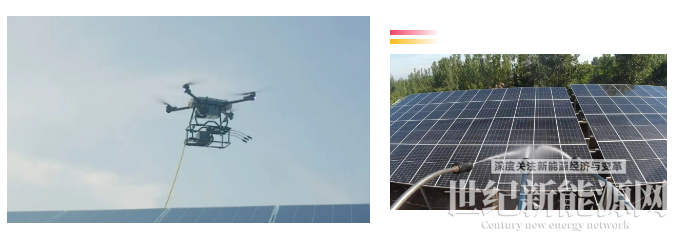 据中国电力企业联合会预计,到2023年底,我国并网光伏发电电站因污染造成产能下降超10%,直接经济损失高达百亿。使用无人机清洗光伏板,不仅能够增强作业安全性、降低人工成本,也能够减少对于光伏板的损伤、提升光伏使用效率,进而可以将光伏清洗与智能巡检相结合。